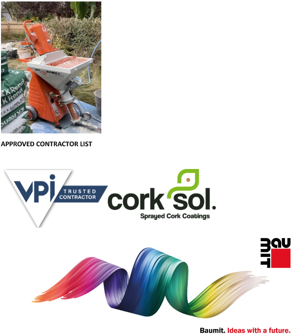 JMB are also trained in application of the innovative natural spray render ‘CorkSol’.